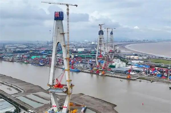 浙江杭甬高速宁波三期工程甬江特大桥主塔顺利封顶
